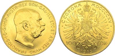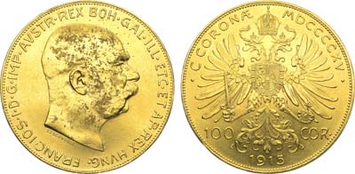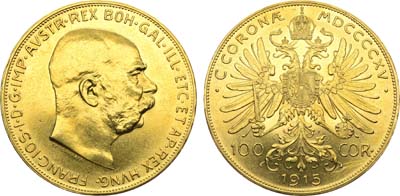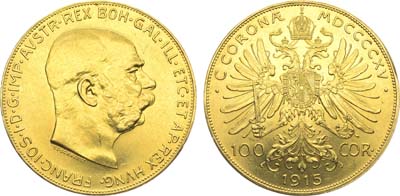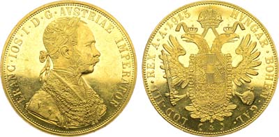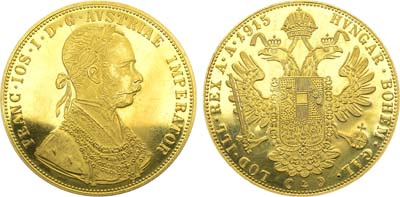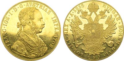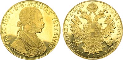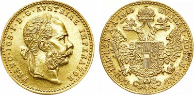Золото 986 пробы. Дукат 1915 года. 3,44 г. Вена. UNC. Дукат 1915 года. 3,44 г. Вена. Дефект кромки гурта реверса на 9 часов. UNC. Дукат 1915 года. 3,44 г. Вена. UNC-. Дукат 1915 года. 3,5 г. Вена. Деформация кружка, след удара на 6 часов. UNC-. KM 2267.