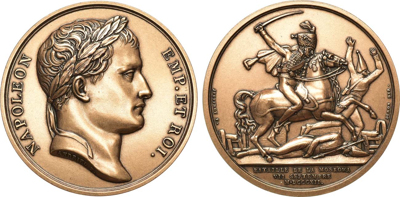 Надпись на реверсе медали: «BATAILLE DE LA MOSKOWA / VII SEPTEMBRE / M•DCCCXII.» (Битва под Москвой 7 сентября 1812 г.).