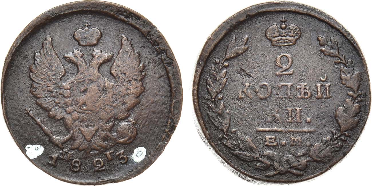 2 копейки 1823 года "ЕМ-ПГ" встречаются особенно редко и представляют высокий коллекционный интерес.