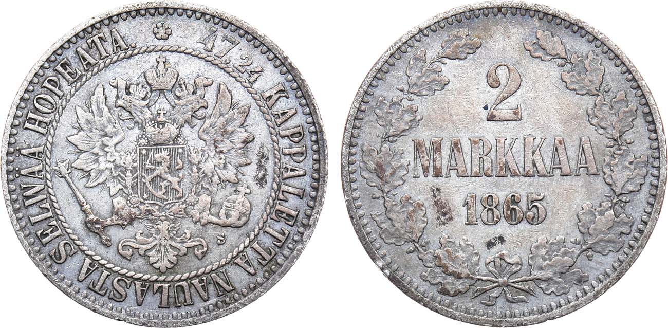 Серебро. 10,27г. Для Финляндии. Гельсингфорсский монетный двор. Уздеников 4657. Биткин 617. AU.