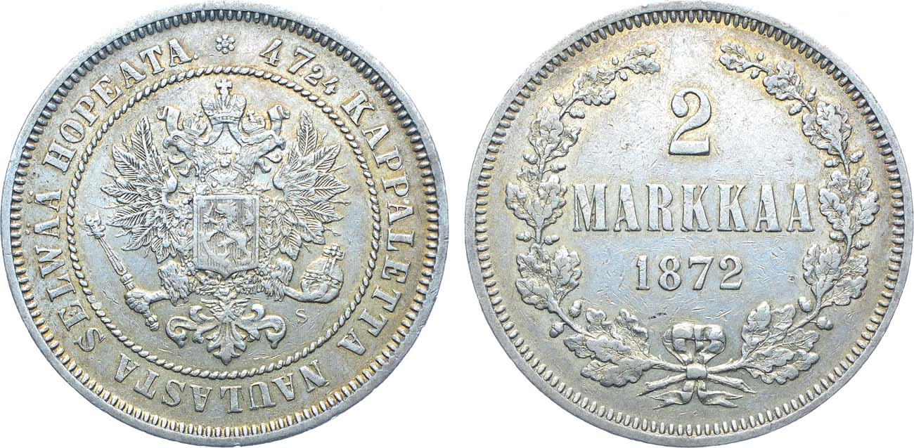 Серебро. 10,33г. Для Финляндии. Гельсингфорсский монетный двор. Уздеников 4692. Биткин 622. AU.