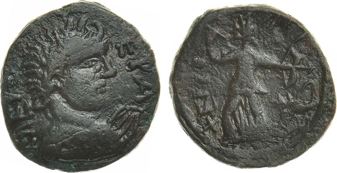 Медь. 6,59г. Херсонес. Аверс: бюст божества Херсонеса вправо; легенда "ΕΛΕΥΘΕΡΑC". Реверс: фигура богини Девы с луком, справа внизу лань; легенда "ΧEΡCONHC". Анохин (1977) 301. VF-.