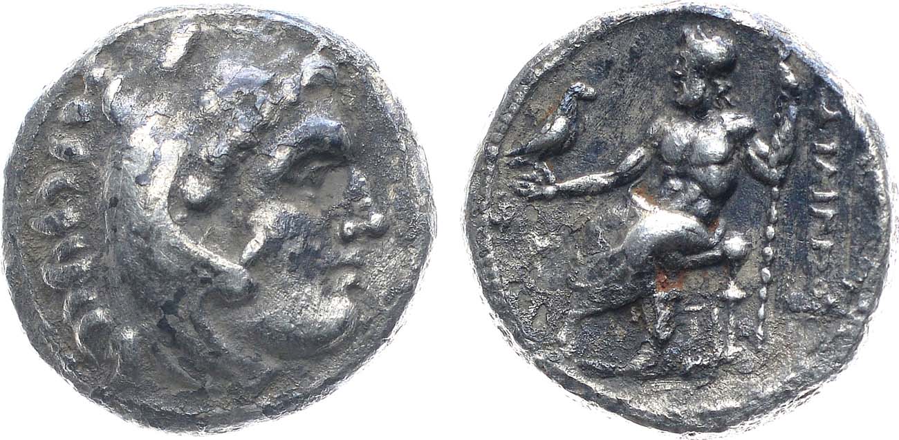 Серебро. 3,96г. Аверс: голова Геракла вправо в львиной шкуре. Реверс: Зевс сидит на троне влево, держит орла и скипетр; легенда "ФІЛІППОY". VF.