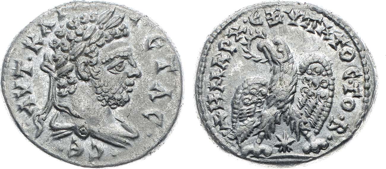 Серебро. 13,57г. Лаодикия. Аверс: круговая легенда; портрет императора в лавровом венке вправо. Реверс: круговая легенда "ΔHMAPX Є Ξ VΠATOC TO B"; изображение орла вправо. Prieur 1169. AU.
