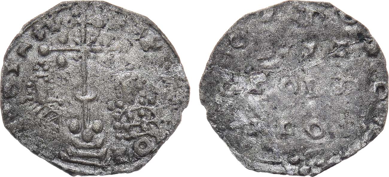 Серебро. 1,13г. Аверс: подражание милиарисиям Василия II и Константина VIII. Реверс: подражание строчной легенде, буквы незначительно искажены. ГП2 52A (R-III). XF-.
