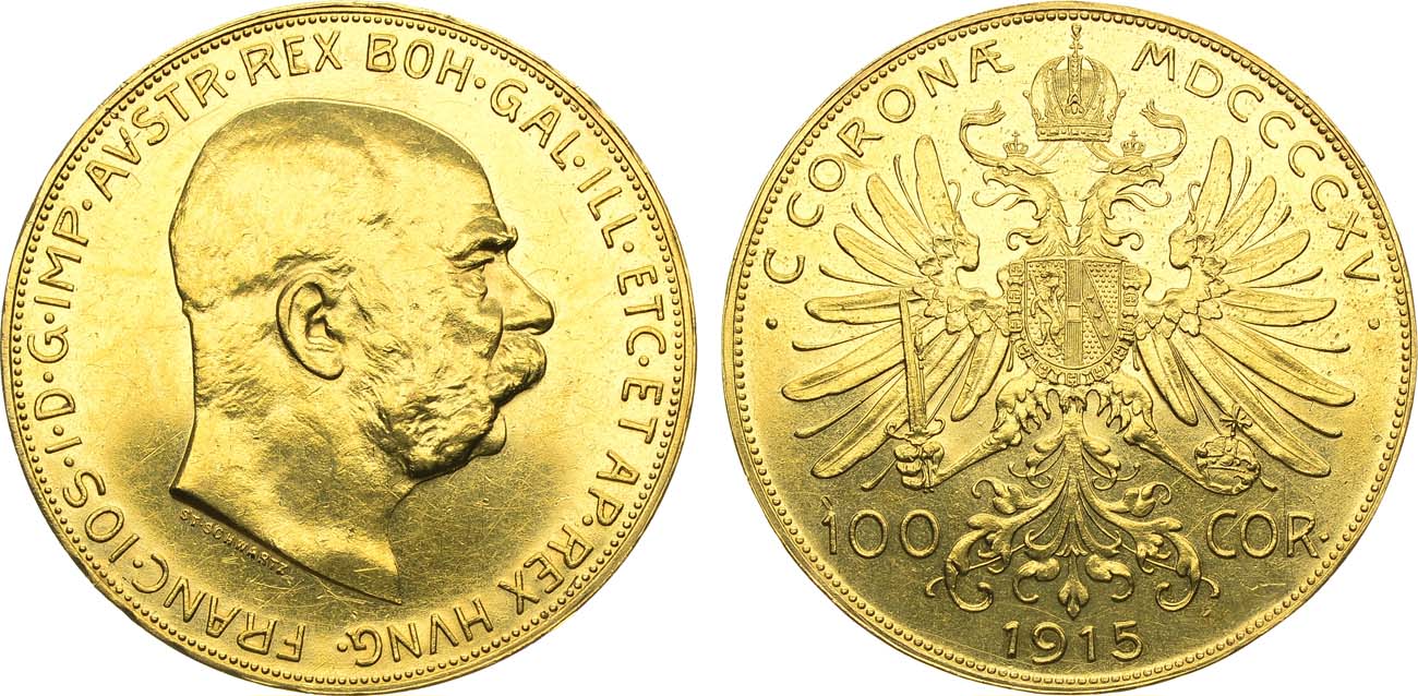 Золото 900 пробы. 33,87г. Вена. KM 2819. AU/UNC.