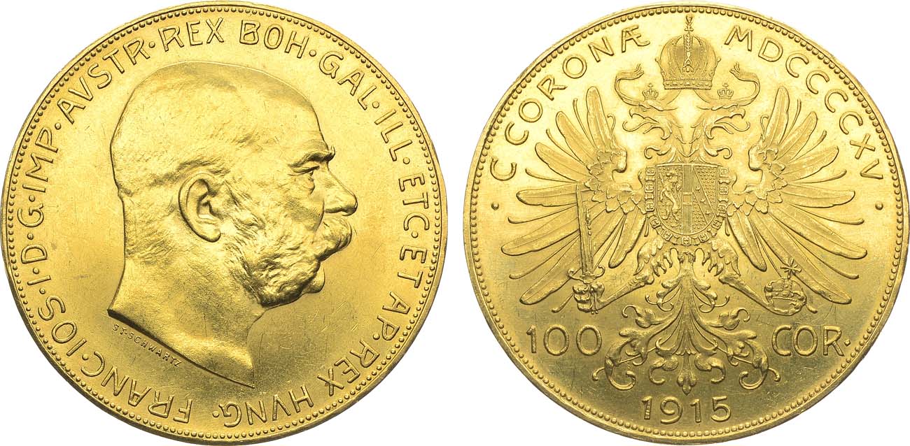 Золото 900 пробы. 33,91г. Вена. KM 2819. UNC.