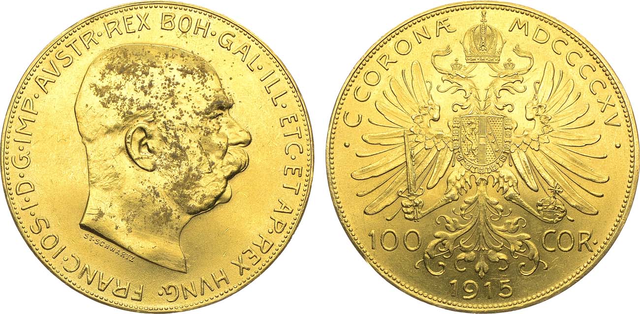 Золото 900 пробы. 33,9г. Вена KM 2819. AU.