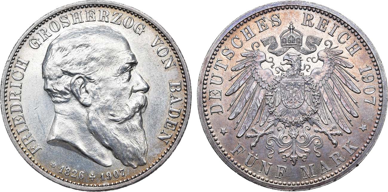 Серебро. 27,83г. Карлсруэ. Отчеканена на смерть великого герцога. KM 279. Davenport 537. AU/UNC.