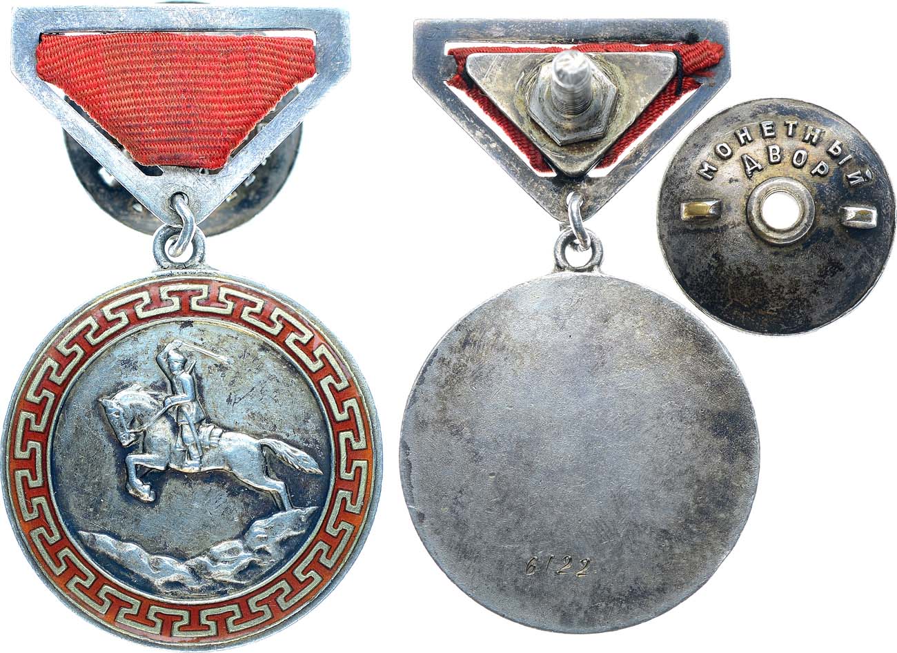 Из старой московской коллекции. Медаль "За боевые заслуги" учреждена совместным указом №23/40 Президиума Малого Государственного Хурала и Совета министров МНР в 1940 году. Эта награда стала одной из двух первых медалей, созданных в ходе реформы наградной системы, начатой Правительством МНР после принятия новой конституции в 1940 года. Внешний вид почетной медали разработали художники Дж. Раднаабазар, Н. Балдан и советский художник Фруценко.