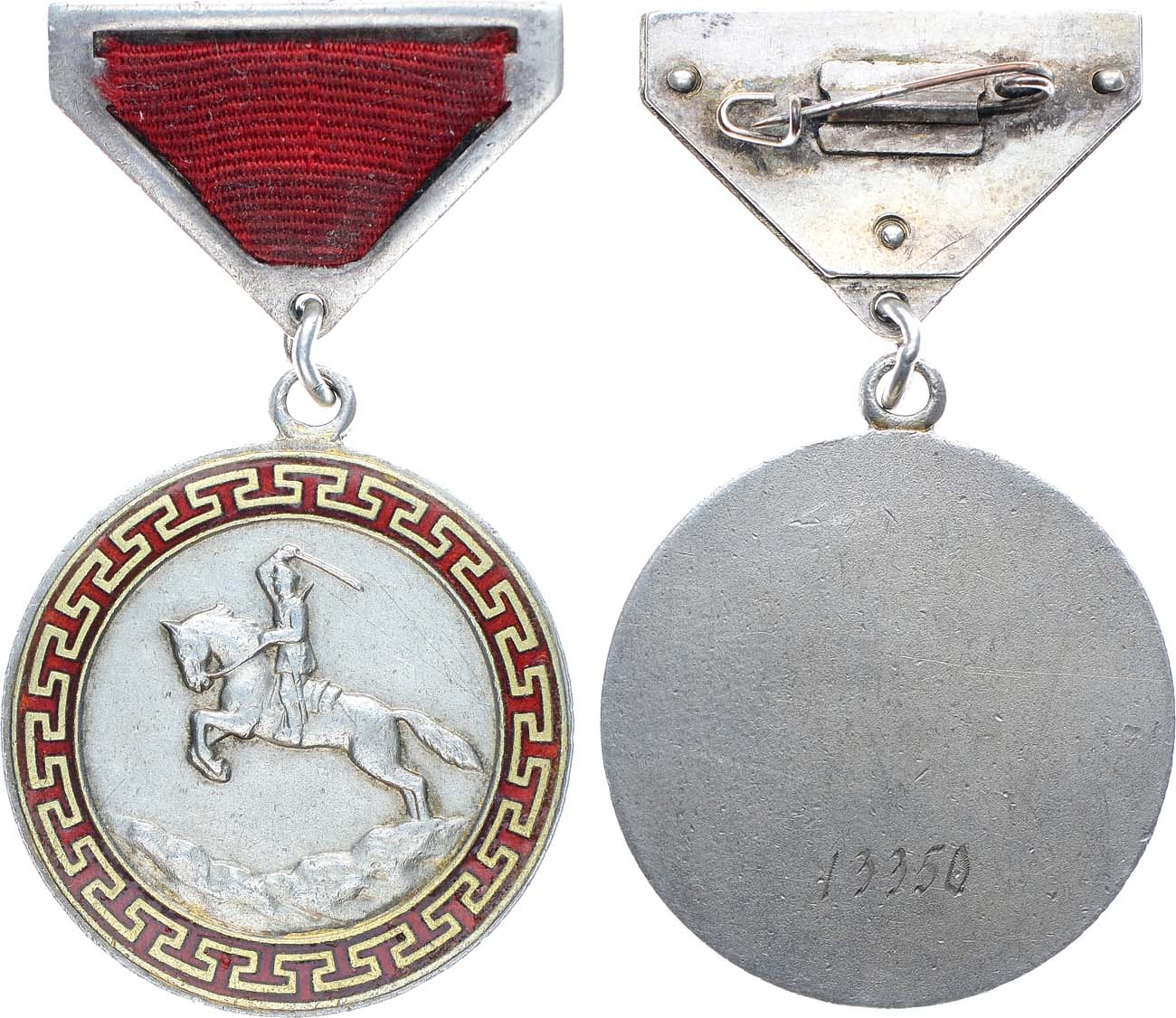 Из старой московской коллекции. Медаль "За боевые заслуги" учреждена совместным указом №23/40 Президиума Малого Государственного Хурала и Совета министров МНР в 1940 году. Эта награда стала одной из двух первых медалей, созданных в ходе реформы наградной системы, начатой Правительством МНР после принятия новой конституции в 1940 года. Внешний вид почетной медали разработали художники Дж. Раднаабазар, Н. Балдан и советский художник Фруценко.