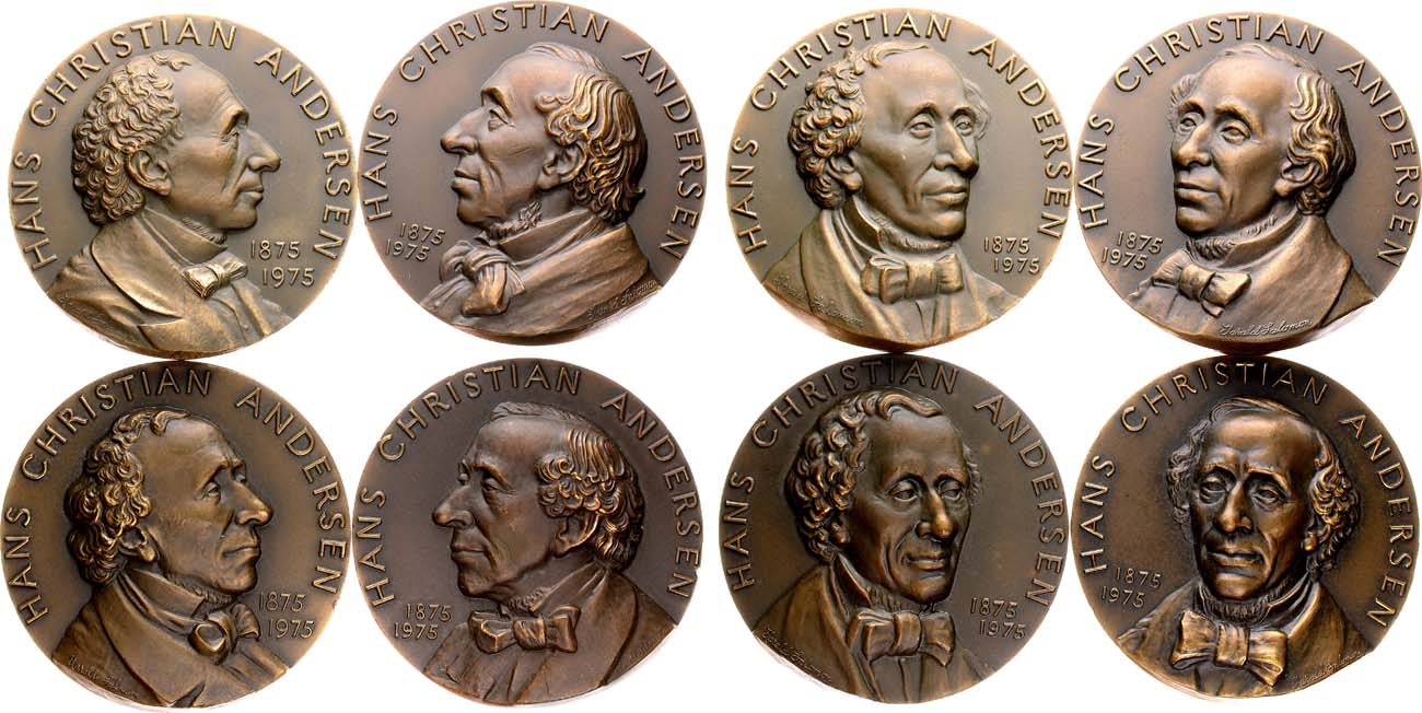 Бронза. Диаметр каждой из 8 медалей 70 мм. Фирма Андерса Нюборга, Финляндия (на гурте каждой из 8 медалей "KULTATEOLLISUUS / FINLAND | ISSUED BY ANDERS NYBORG"). Медальер Гаральд Саломон (на аверсе выше обреза плеча каждой из 8 медалей "Harald Salomon"). Тираж 4.000 экз. UNC.