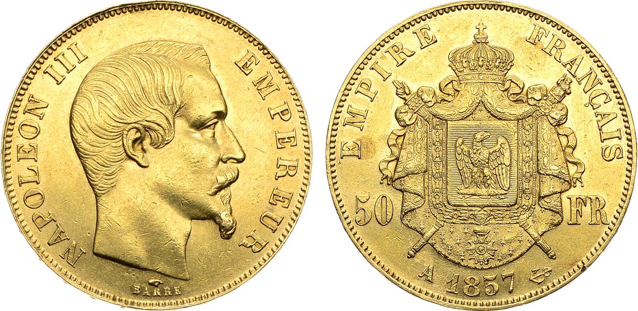 Золото 900 пробы. 16,14г. Париж (А). KM 785. Le Franc 547.4.. AU-.