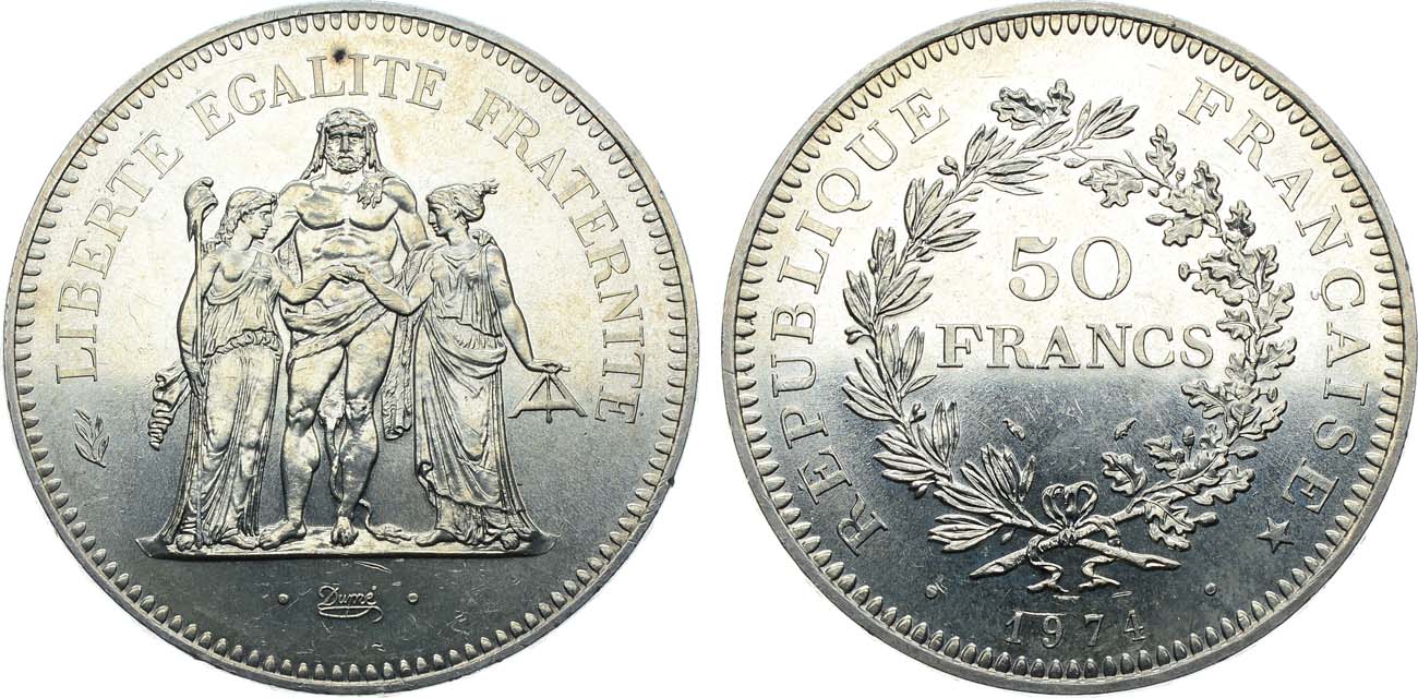 Серебро. 30,07г. Париж. KM 941. UNC.
