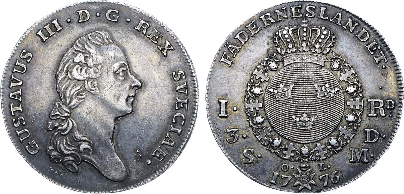 Серебро. 29,24г. Стокгольм. KM 514. AU.
