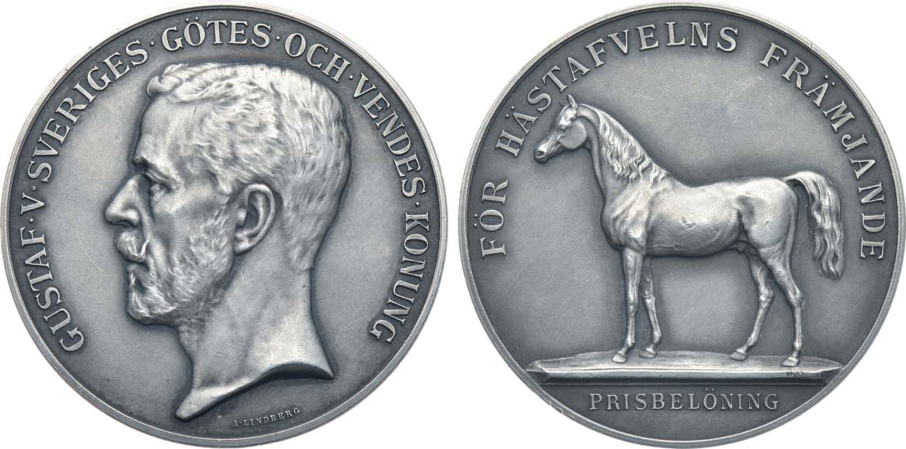 Королевство Швеция. Король Густав V. Медаль 1933 года. За содействие в разведении лошадей.