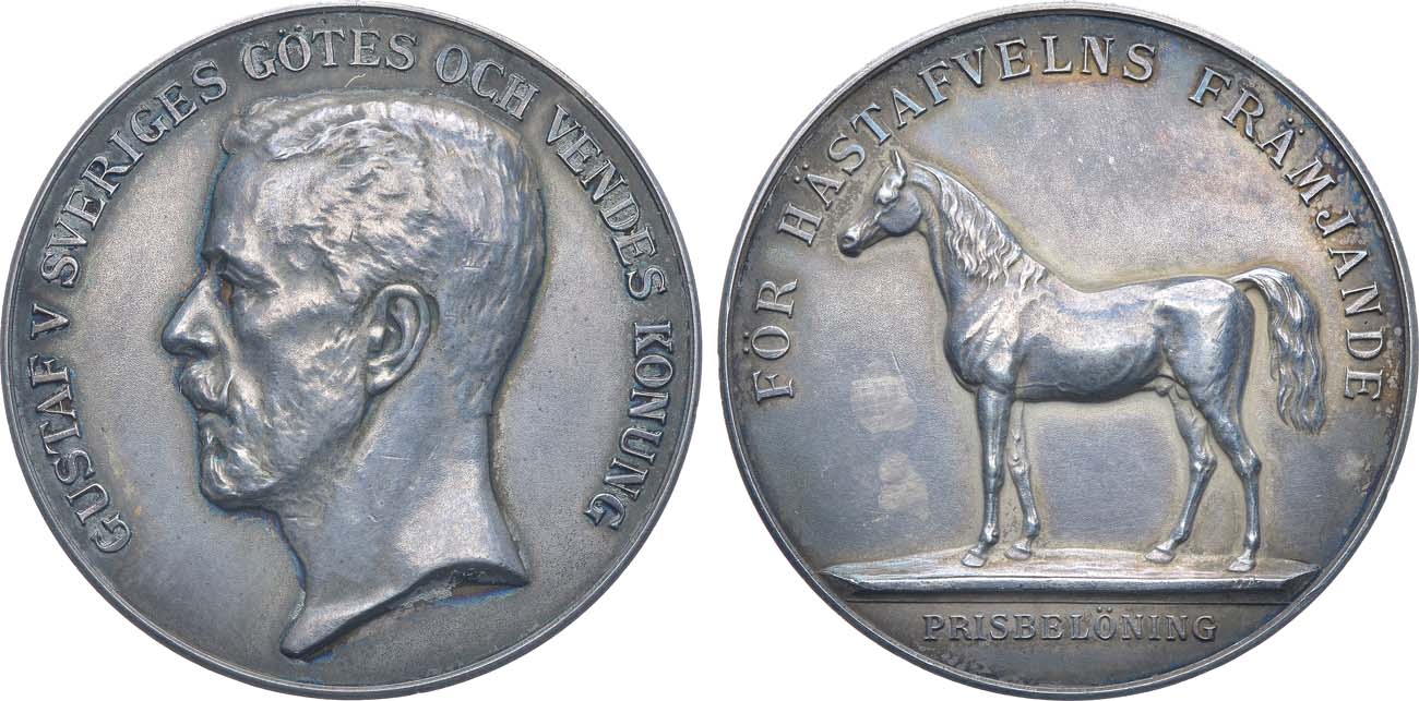 Королевство Швеция. Король Густав V. Медаль 1937 года. За содействие в разведении лошадей.