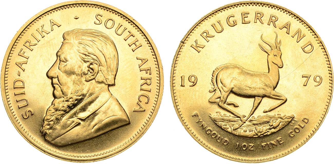 Золото 917 пробы. 34,03г. Претория. Тираж 4.940.755 экз. KM 73. BU.