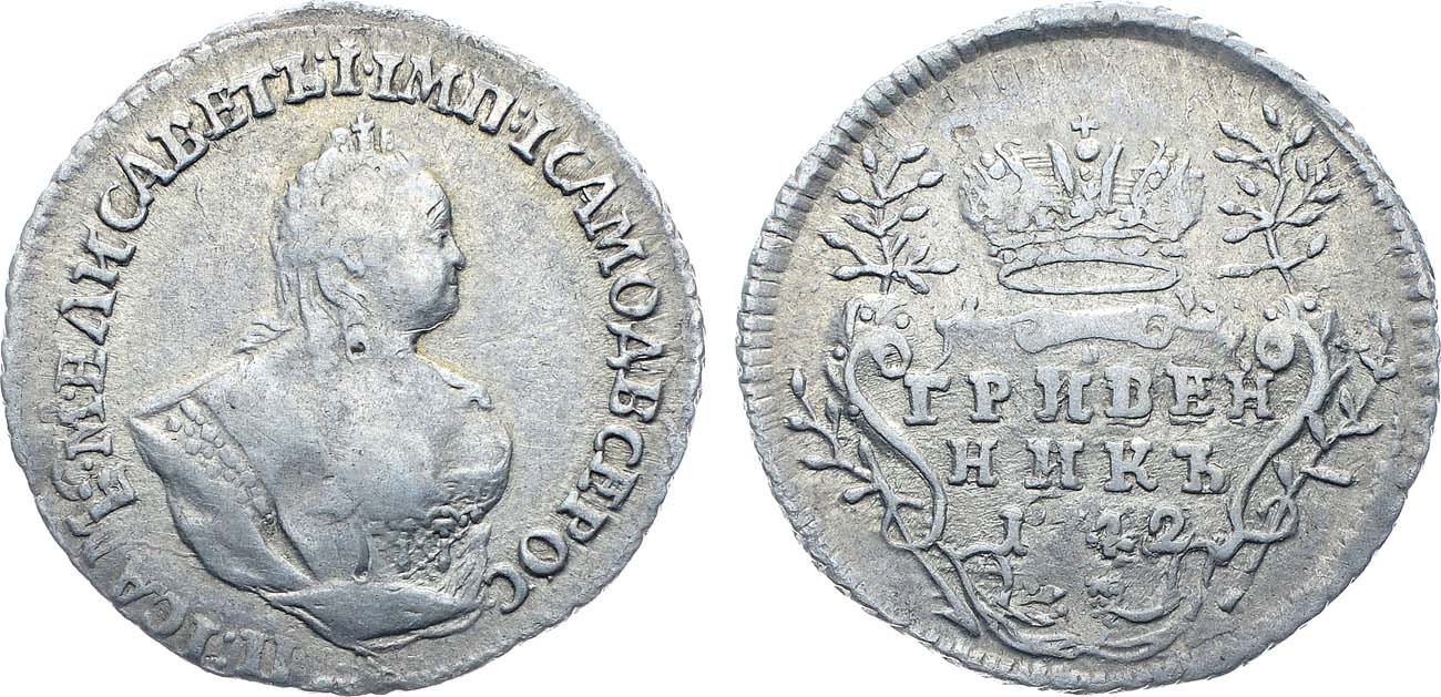 Перечеканы гривенника Елизаветы из Иоанна Антоновича встречается редко.