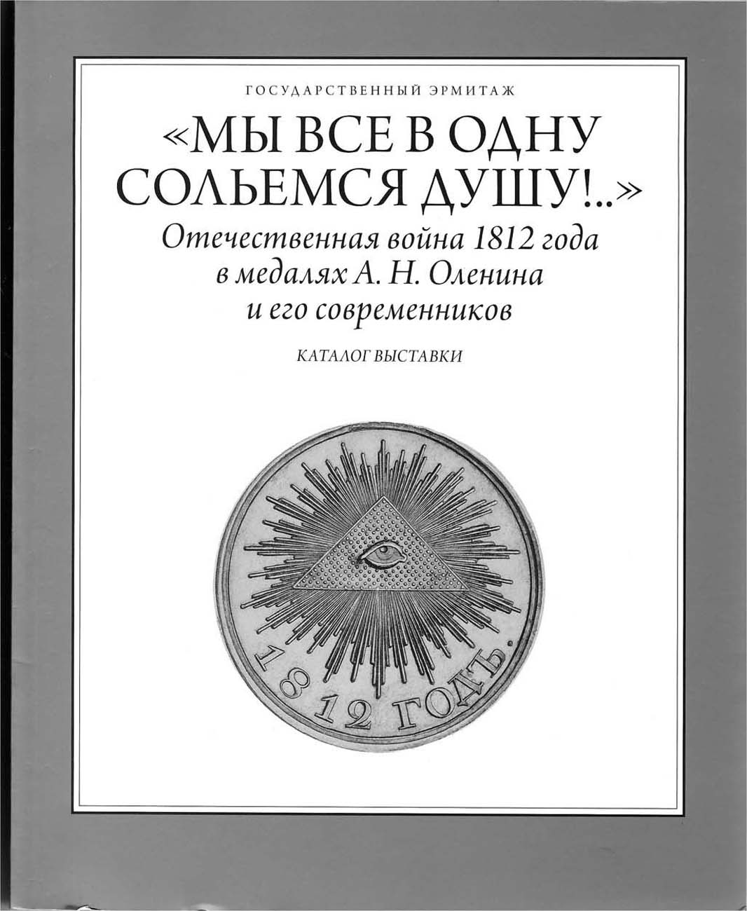 СПБ, 2012 г. 248 стр. Издательство Государственного Эрмитажа. Настоящее издание подготовлено к выставке "Мы все в одну сольемся душу!..". Отечественная война 1812 года в медалях А.Н. Оленина и его современников", посвященной 200-летию победоносного окончания войны России с Наполеоном. В каталог вошли материалы Государственного Эрмитажа и других собраний, раскрывающие первый опыт, предпринятый А.Н. Олениным (1763-1843) для увековеченья в медальерном искусстве подвигов русского воинства и народа, совершенных в Отечественной войне и заграничных походах 1813 и 1814 годов. Проекты Н.А. Оленина впервые показаны в историческом контексте, представленном произведениями К.А. Леберехта, И.А. Шилова, императрицы Марии Федоровны и Ф.П. Толстого.