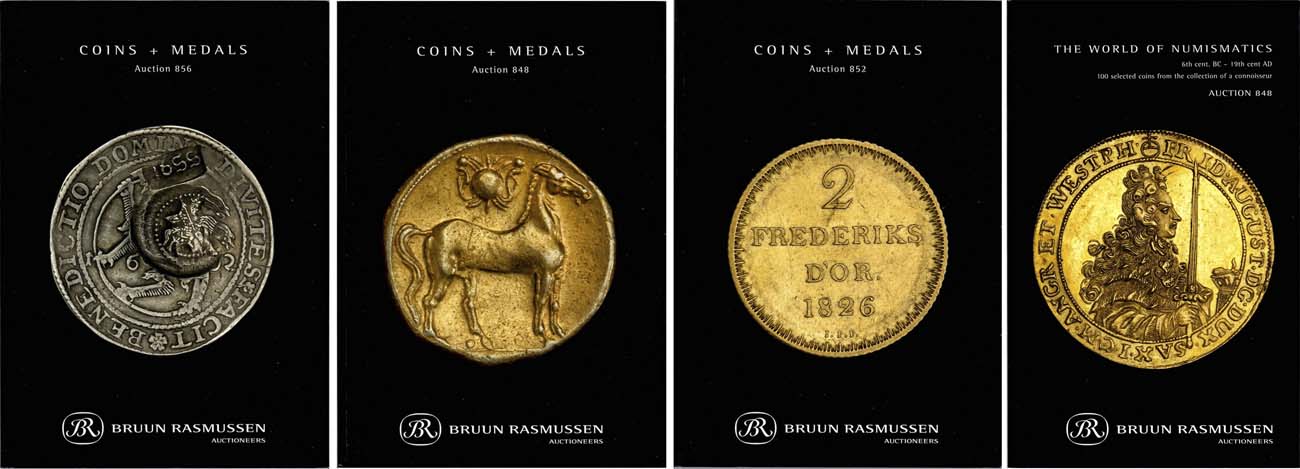 Аукцион 848. Копенгаген, 13 мая 2014 года. В двух частях. Аукцион 852. Копенгаген, 4 ноября 2014 года. Аукцион 856. Копенгаген, 12 мая 2015 года. Европейские средневековые монеты. Античные монеты. Иностранные монеты. Большой раздел с настольными и наградными медалями, в том числе русскими.