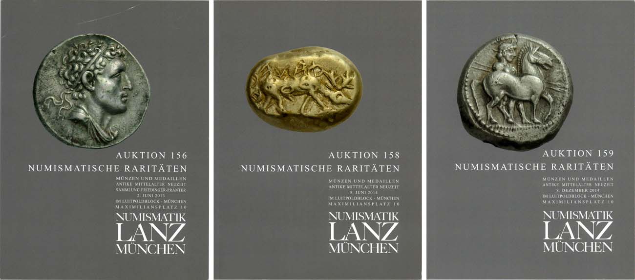 Аукцион 156. Мюнхен, 2 июня 2013 года. Аукцион 158. Мюнхен, 5 июня 2014 года. Аукцион 159. Мюнхен, 8 декабря 2014 года. 915 лотов Античные монеты. Немного средневековых и XVII-XIX вв. европейских монет и медалей.