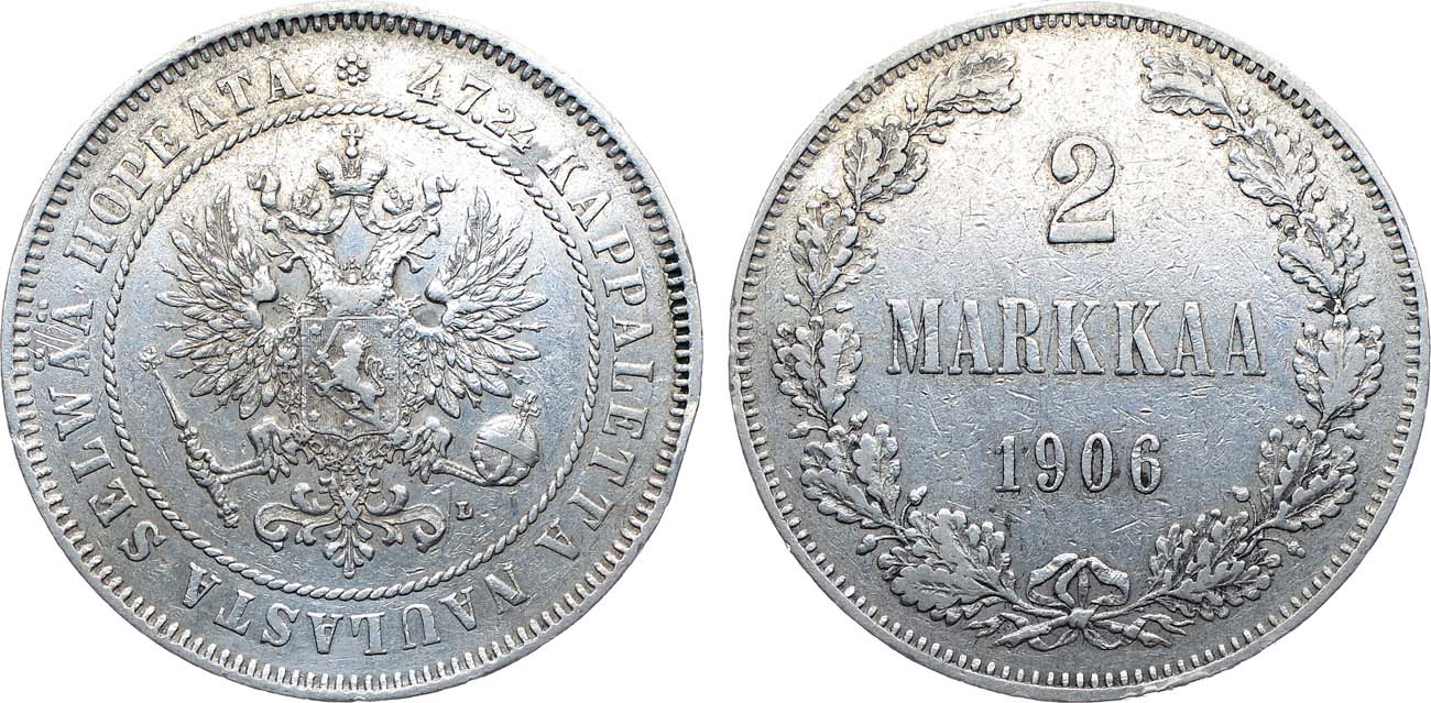 Серебро. 10,38г. Для Финляндии. Гельсингфорсский монетный двор. Уздеников 4780. Биткин 396. Казаков 320. XF/AU.