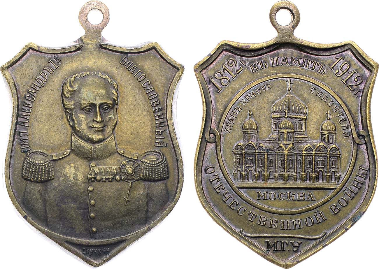 Жетон 1912 года. В память 100-летия Отечественной войны, Александр I.