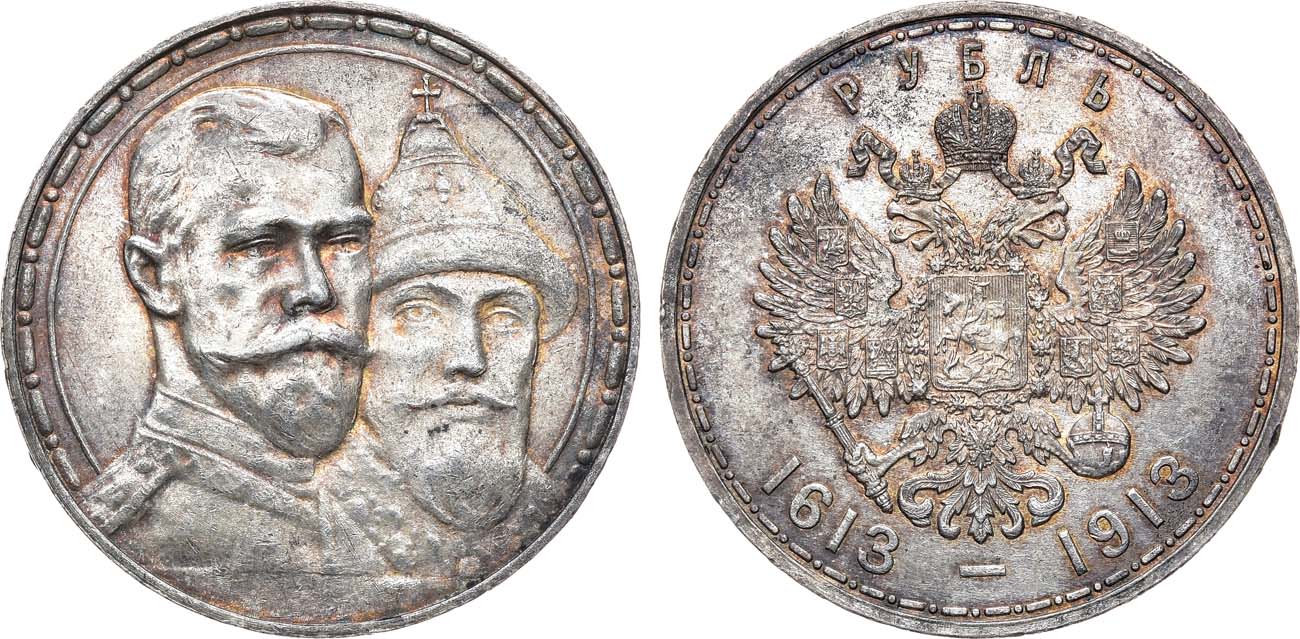 Серебро. 20г. Чеканен в память 300-летия Дома Романовых. Аверс: выпуклый чекан. Уздеников 4194. Биткин 336. UNC.