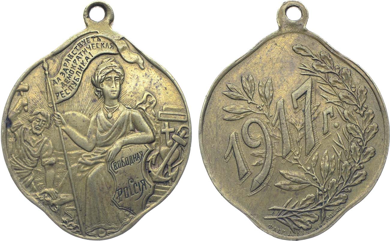 Бронза. 5,5г. Размеры 32.8×25.8 мм. Москва. Фабрика Д.Л. Кучкина (на реверсе внизу у бортика: "ФАБР. Д.КУЧКИН. МОСКВ."). Руденко 1917.31.3. XF.