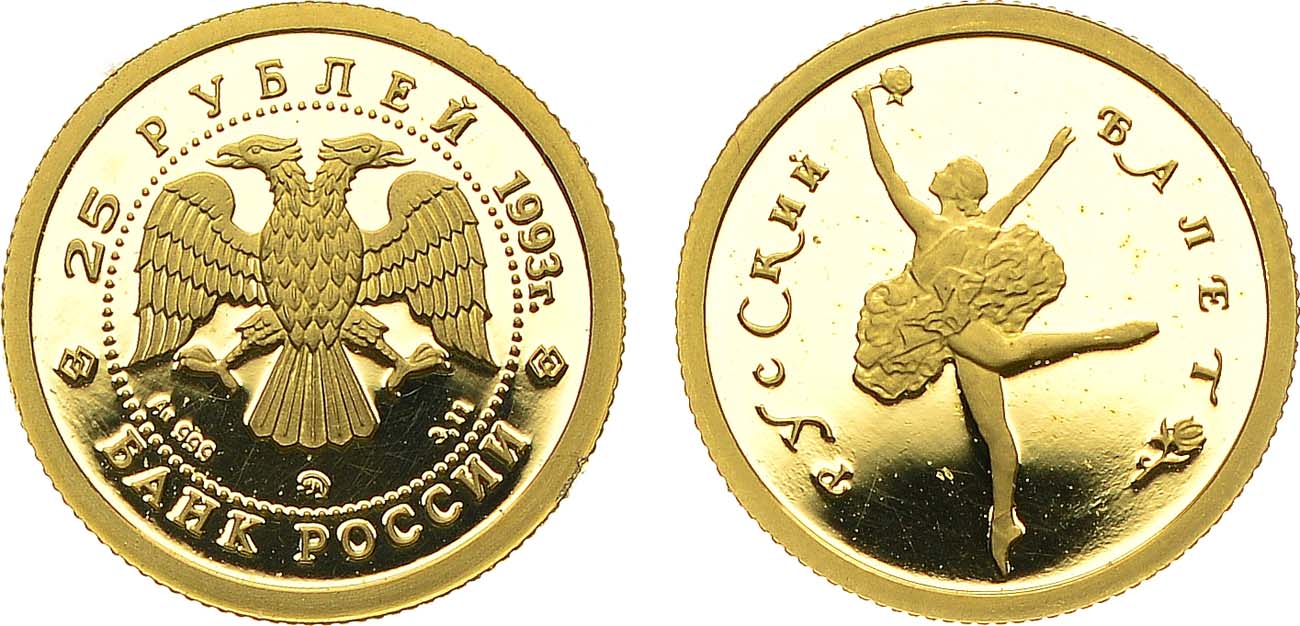Монета вложена в капсулу. "Русский балет" - прочно устоявшееся в мировой культуре понятие, отражающее бесспорный авторитет русских хореографов, композиторов и артистов балета. Возникший во второй половине XVII в., русский балет занял к началу XX в. ведущее место в хореографическом искусстве. Слава русского балета, начавшись с Русских сезонов в Париже и Лондоне (1907-1914), организованных С.Дягилевым, с творческой работы легендарной балерины Анны Павловой, была приумножена Г.Улановой, М.Плисецкой, Е.Максимовой, В.Васильевым и другими российскими "звёздами", искусство которых получило признание во всем мире.