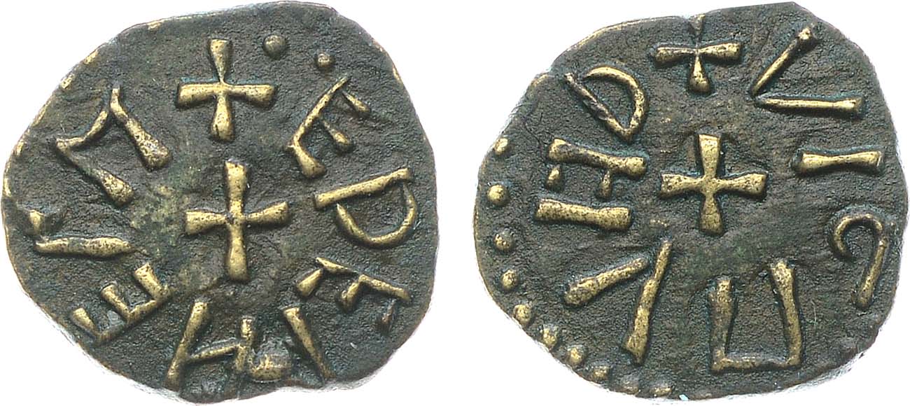 Медь. 1,13г. Йорк. Аверс: крест; легенда "+ VIGMVND". Реверс: крест; легенда "+ EDELHELM". Spink 870. VF.