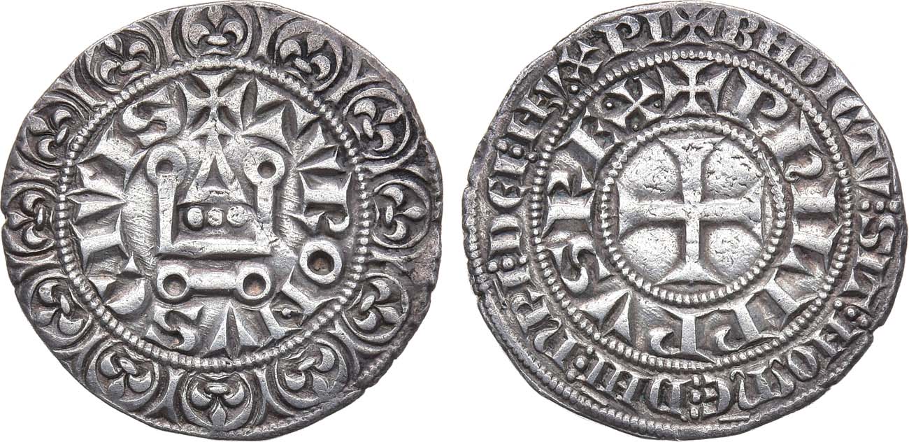 Серебро. 4,04г. Аверс: круговая легенда "PHILIPPUS REX". Реверс: круговая легенда "TVRONVS CIVIS". AU.