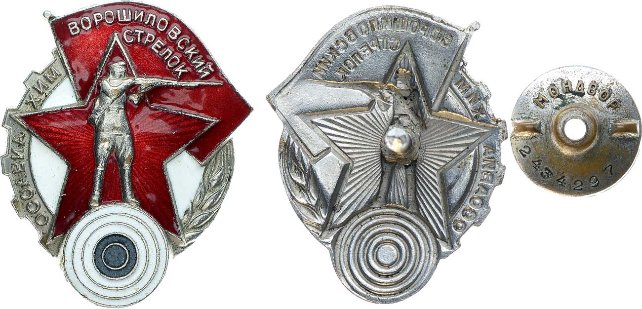 Из старой московской коллекции. "Ворошиловский стрелок" — нагрудный знак Осоавиахима и РККА для награждения граждан СССР, овладевших стрелковым делом и успешно сдавших соответствующие нормы, включающие стрельбу из стрелкового оружия. Стрельба и военные знания согласно положения о значке "Ворошиловский стрелок" входили в сдачу умений физкультурного комплекса на получение значка "Готов к труду и обороне" 1932 года.