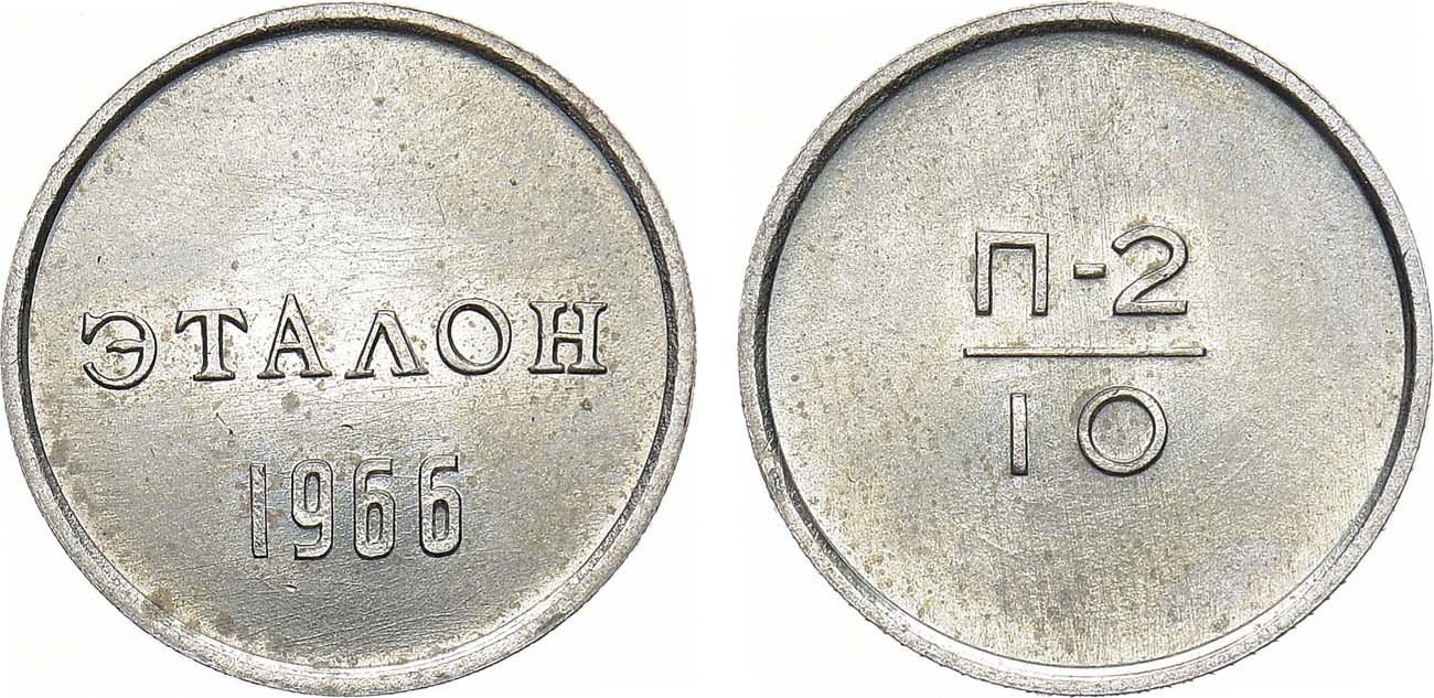 Эталоны для настройки торговых автоматов по всем параметрам (металл, размер, вес, гуртовое оформление) соответствуют тиражным монетам СССР образца 1961 года с номиналами 1 рубль, 50 копеек, 20 копеек, 15 копеек и 10 копеек. Эталоны имели следующие обозначения: Н1 - непроходной - нижний по весу, то есть монеты с таким весом и меньше автомат не должен принимать; П1 - нижний (минимальный) вес проходной - монеты такого веса и выше (до П2) должны приниматься к оплате; П2 - верхний (максимальный) вес проходной- максимальный вес платежеспособной монеты, которую можно принимать; Н2 - непроходной - вес монеты, от которого автомат монеты принимать не должен.