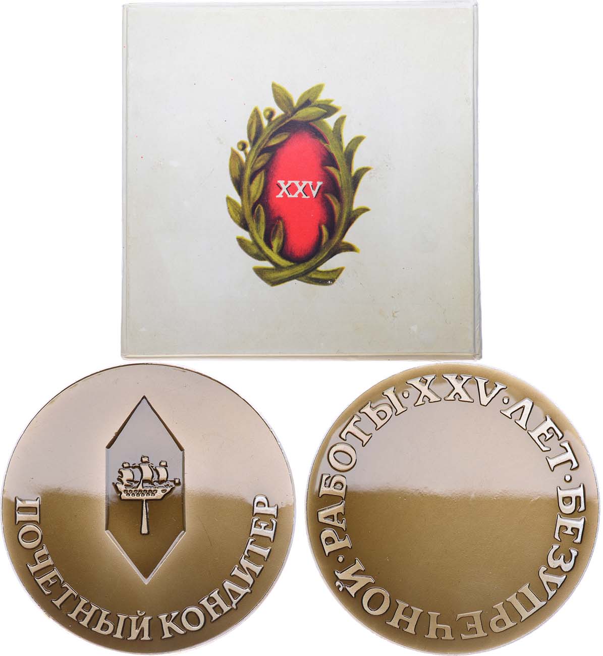 За 25 лет безупречной работы на кондитерской фабрике Ленинграда.