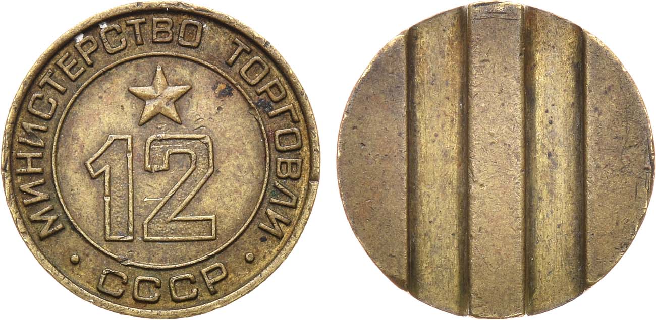 Жетон для обслуживания торговых автоматов, столовых ресторанов и кафе Министерства торговли СССР 1955-1977 года.