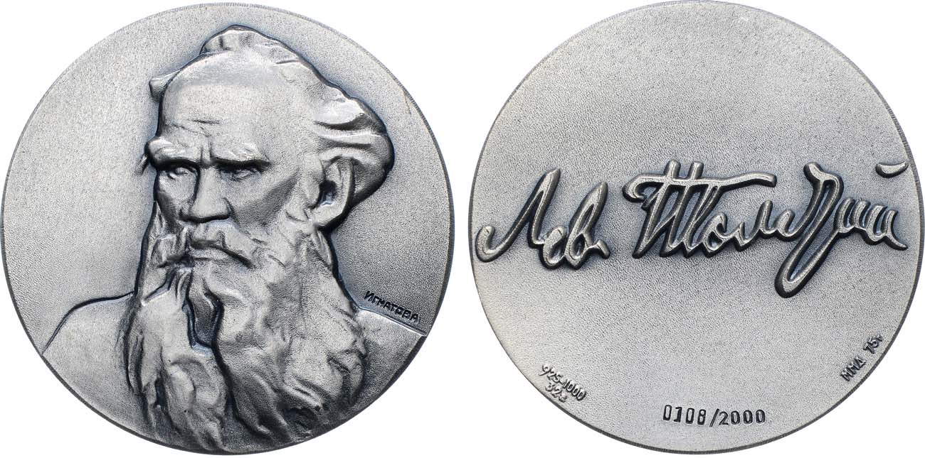 Серебро 925 проба. 31,66г. Диаметр 40 мм. Московский монетный двор. Медальер Н.И. Игнатова (на аверсе на 4 часа "ИГНАТОВА"). Реверс: клейма "925-1000/32 г", "ММД 75 г"; гравировка "0108/2000". Тираж: 2000 экз. Шкурко, Салыков 959. UNC.
