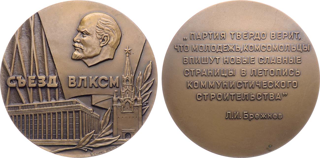 Томпак. 126,42г. Диаметр 65 мм. Ленинградский монетный двор. Медальер Б.Л. Старис (на аверсе на пять часов "Б.Старис ЛМД 1978"). Тираж 7083 экз. Шкурко, Салыков 1155. UNC.