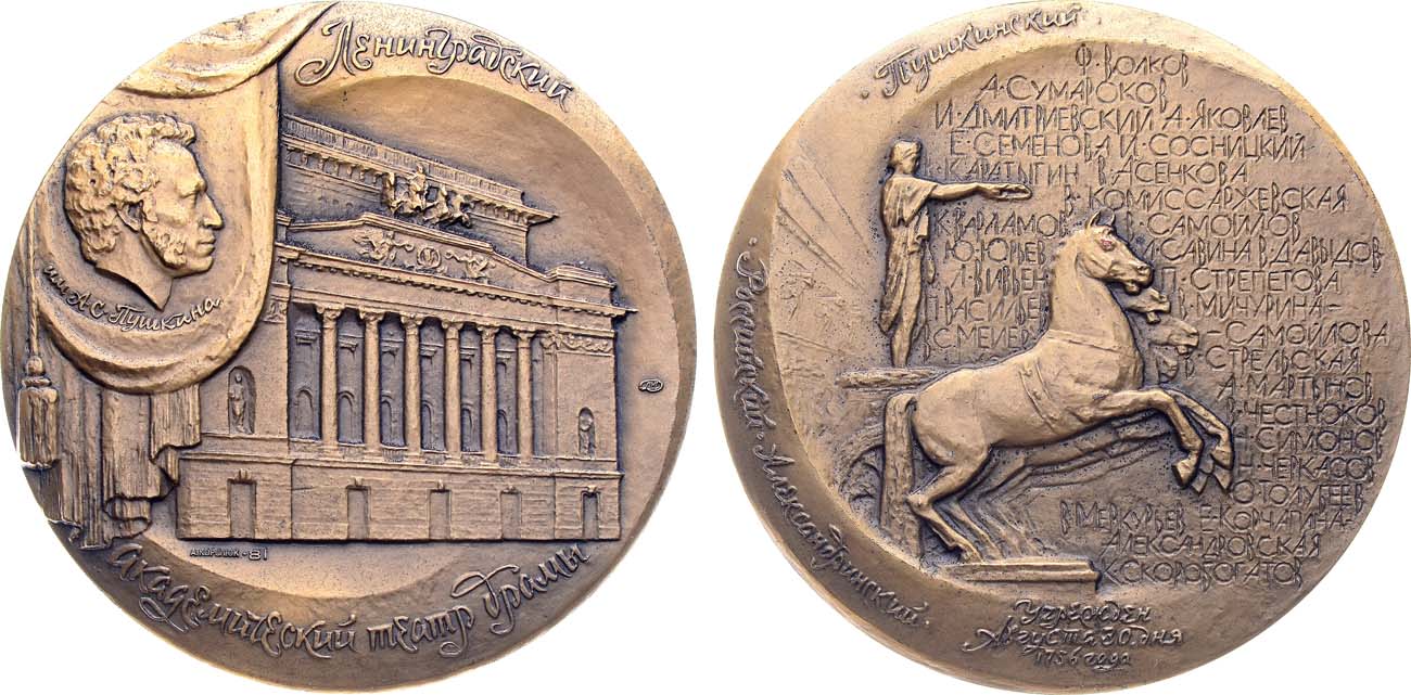 Томпак. 159,98г. Диаметр 65 мм. Ленинградский монетный двор. Медальер А.А. Королюк (аверс: "А.КОРОЛЮК-81" под зданием Большого театра, подпись крупно). Шкурко, Салыков 1275. UNC.