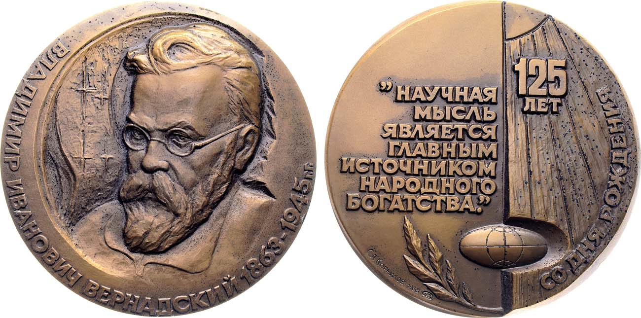 Владимир Иванович Вернадский (1863-1945 гг.) - российский и советский учёный естествоиспытатель, мыслитель и общественный деятель конца XIX - первой половины XX вв. Академик Санкт-Петербургской академии наук, Академии наук СССР. Один из представителей русского космизма; создатель науки биогеохимии. В круг его интересов входили геология, почвоведение, кристаллография, минералогия, геохимия, радиогеология, биология, палеонтология, биогеохимия, метеоритика, философия и история. Кроме того, он занимался организаторской научной и общественной деятельностью. Лауреат Сталинской премии первой степени (1943 г.).