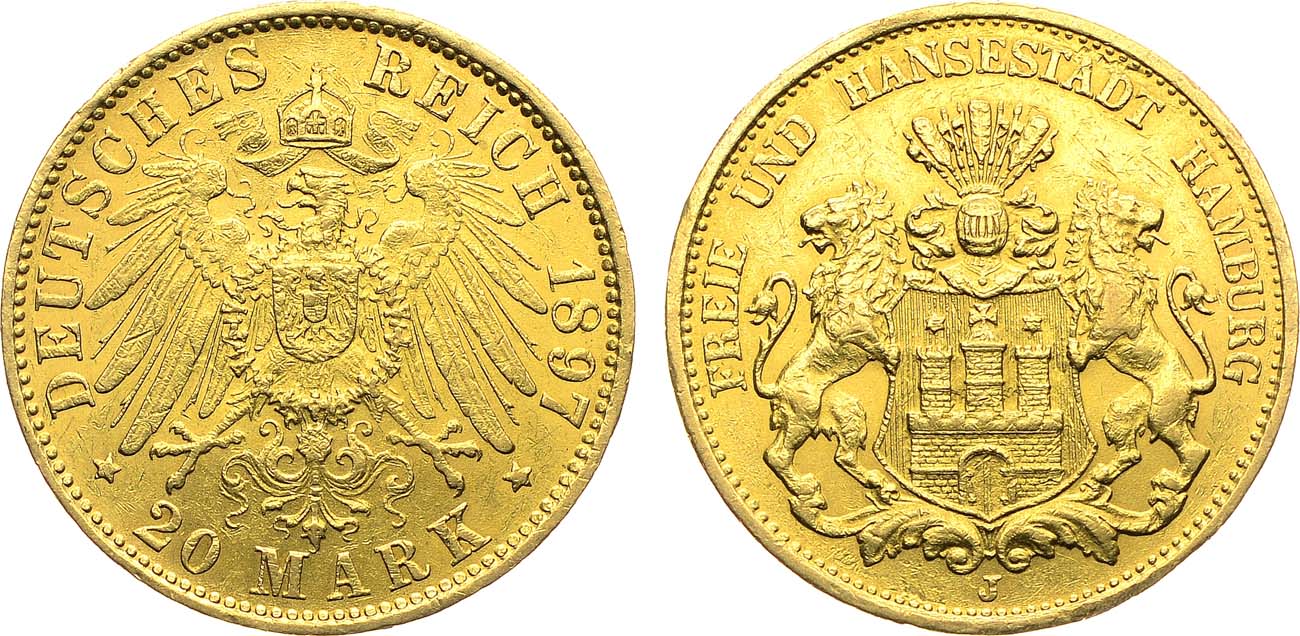Золото 900 пробы. 7,97г. Гамбург (J). Тираж: 500.000 экз. KM 602. Jaeger 210. Weege 207. AU.
