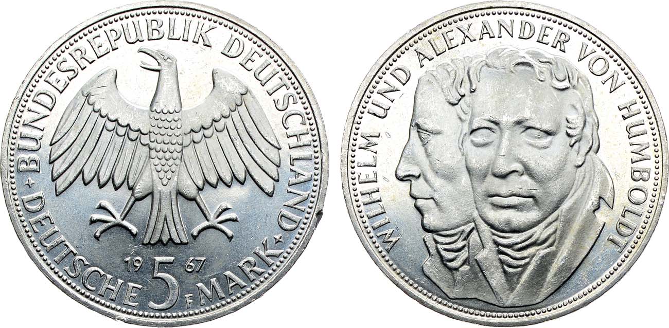 Серебро 625 проба. 11,2г. Штутгарт (F). Тираж 1.940.000 экз. KM 120. UNC.