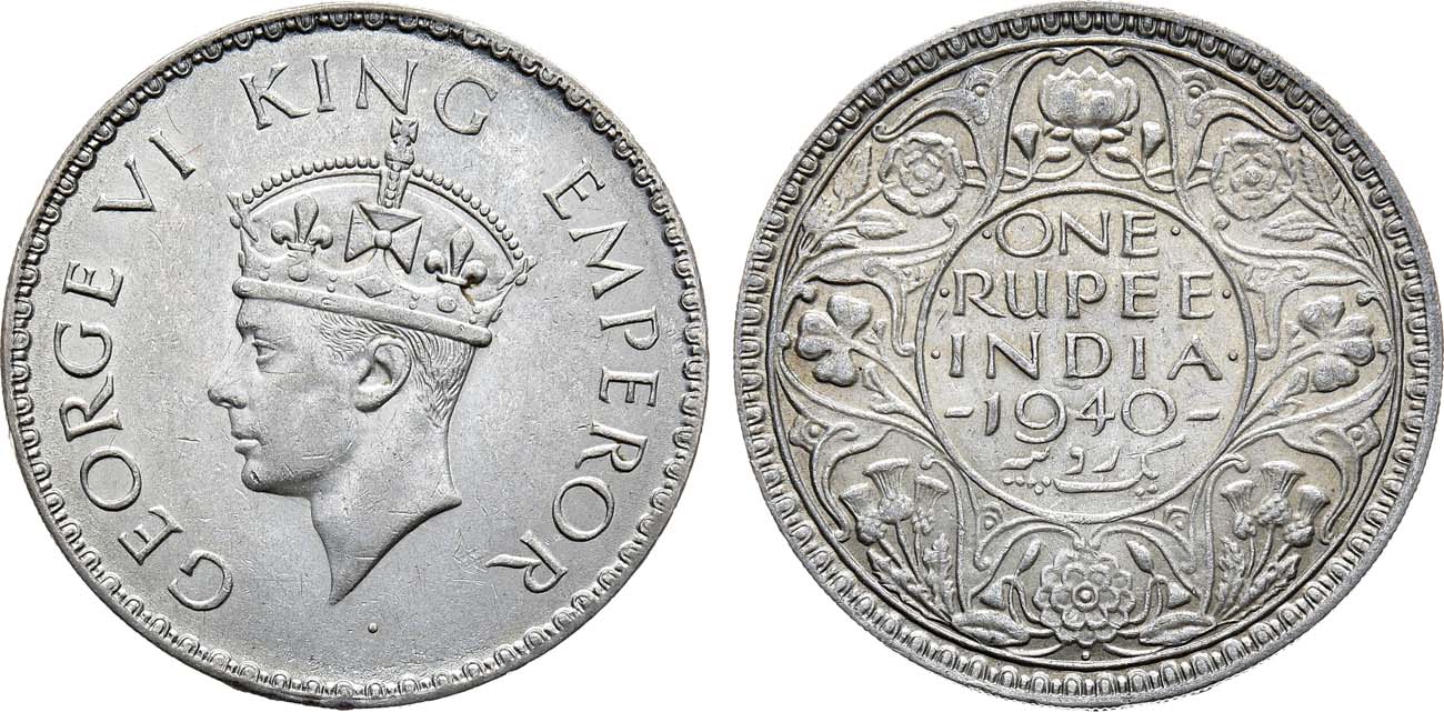 Серебро 500 пробы. 11,71г. Бомбей. Тираж 153120000 экз. KM 556. UNC.
