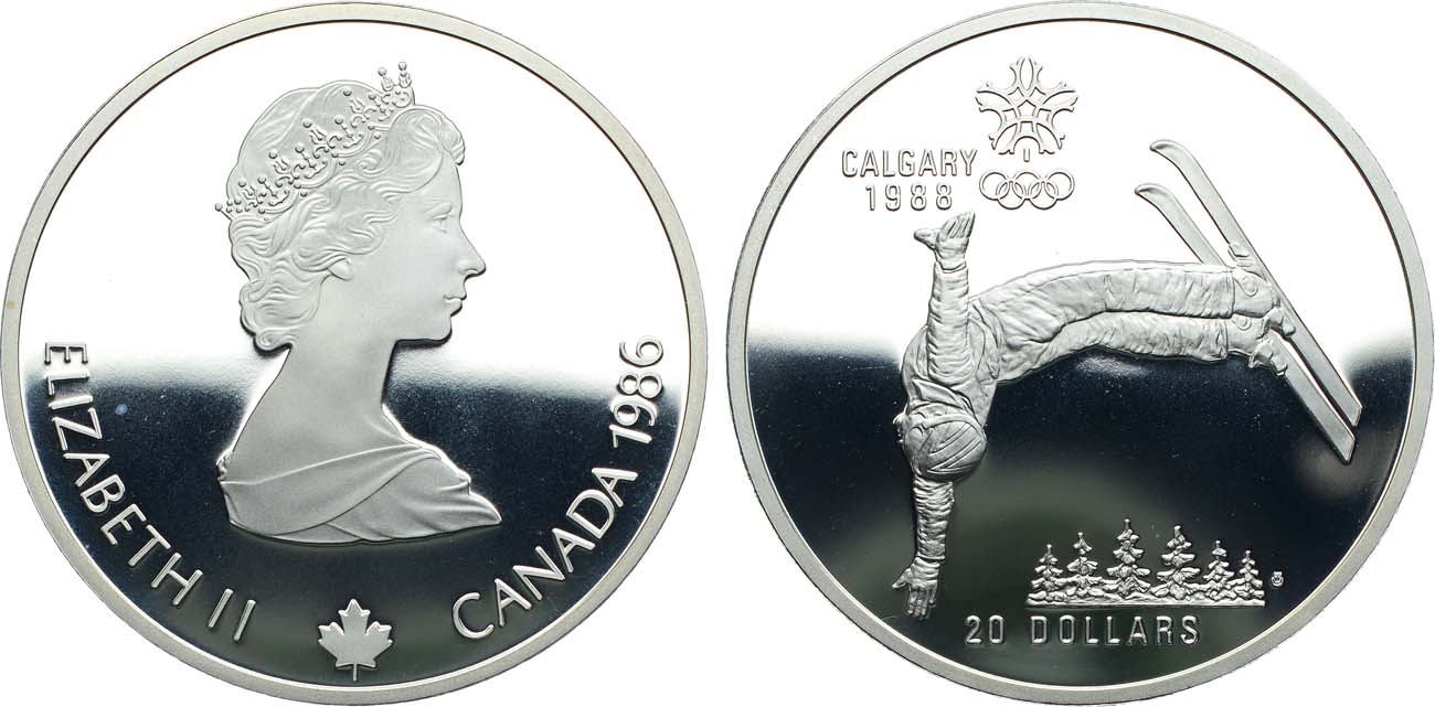 Серебро 925 проба. 33,63г. Оттава. Надпись на гурте 'XV OLYMPIC WINTER GAMES - XVES JEUX OLYMPIQUES D'HIVER'. KM 151. PROOF.