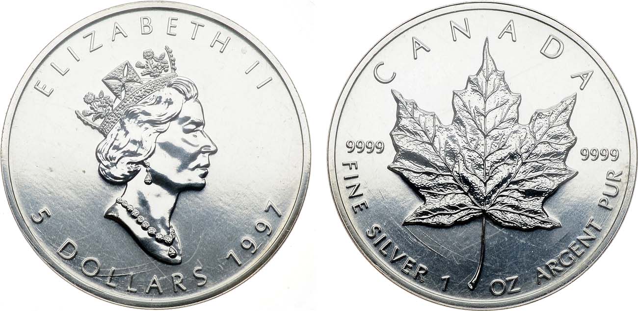 Серебро 999 пробы. 31,1г. Оттава. Тираж: 100.970 экз. KM 187. BU.