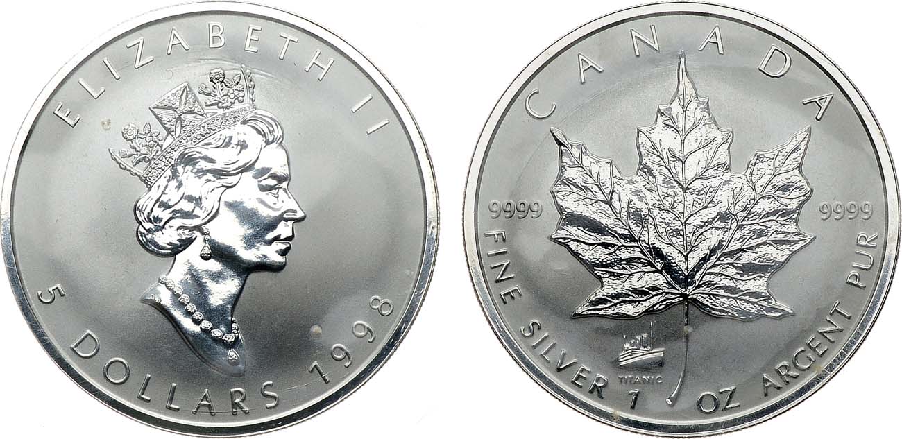 Серебро 999 пробы. 31,1г. Оттава. Реверс: отметка "Титаник". Тираж: 26.000 экз. KM 187. BU.