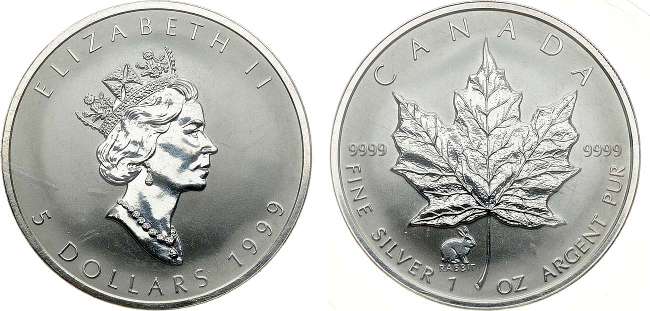 Серебро 999 пробы. 31,1г. Оттава. Реверс: отметка "кролик". Тираж: 25.000 экз. BU.
