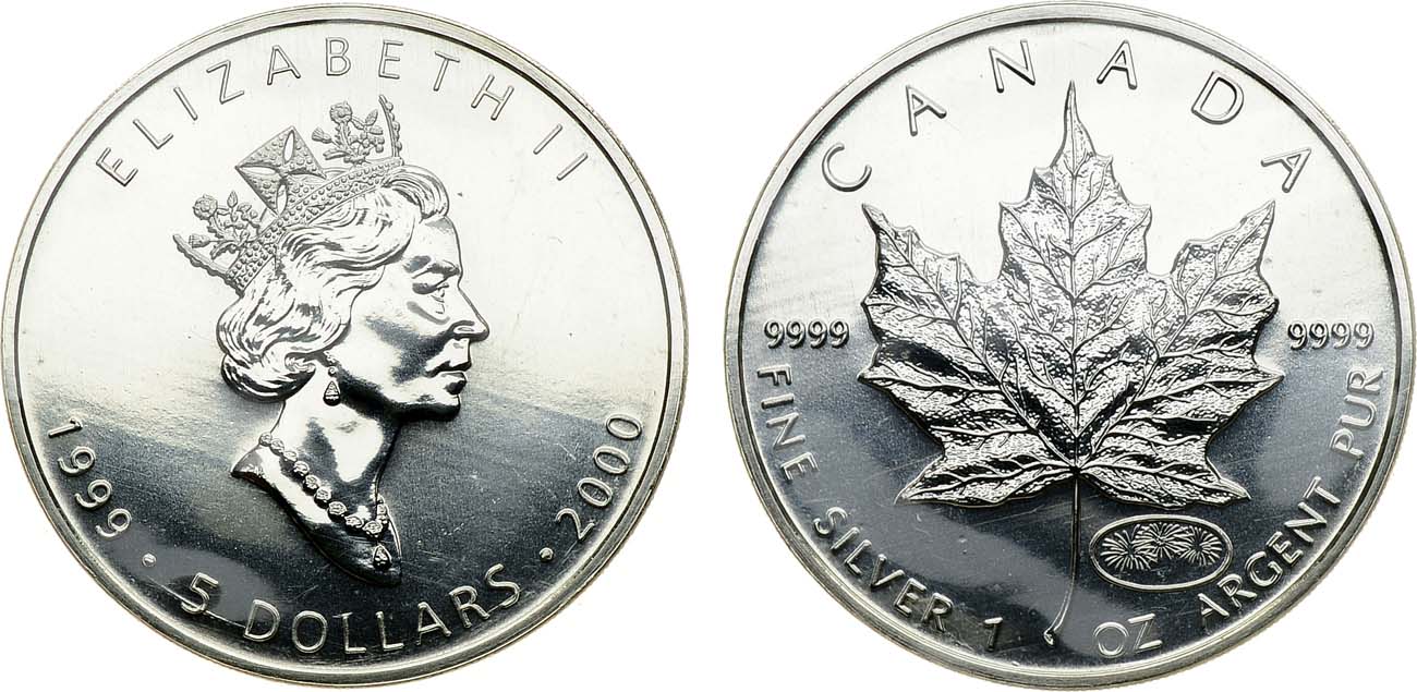 Серебро 999 пробы. 31,1г. Оттава. Реверс: отметка "фейерверк". Тираж: 403.652 экз. KM 187. BU.
