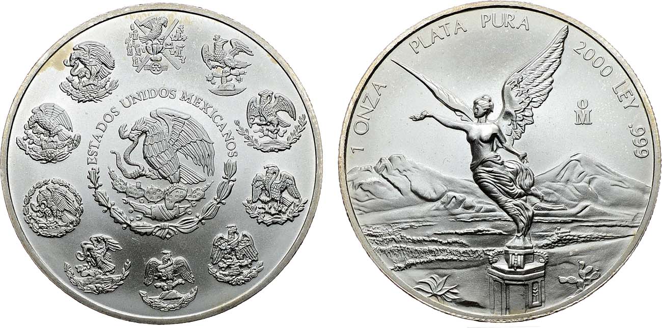 Серебро 999 пробы. 31,1г. Мехико. KM 639. UNC.